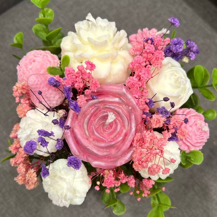 Stredne veľká čierna krabička plná romanticky ladených kvetov – dar pre okamihy plné lásky.