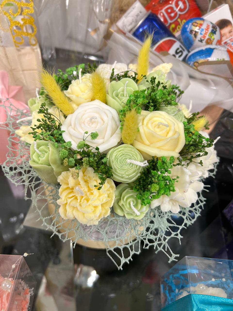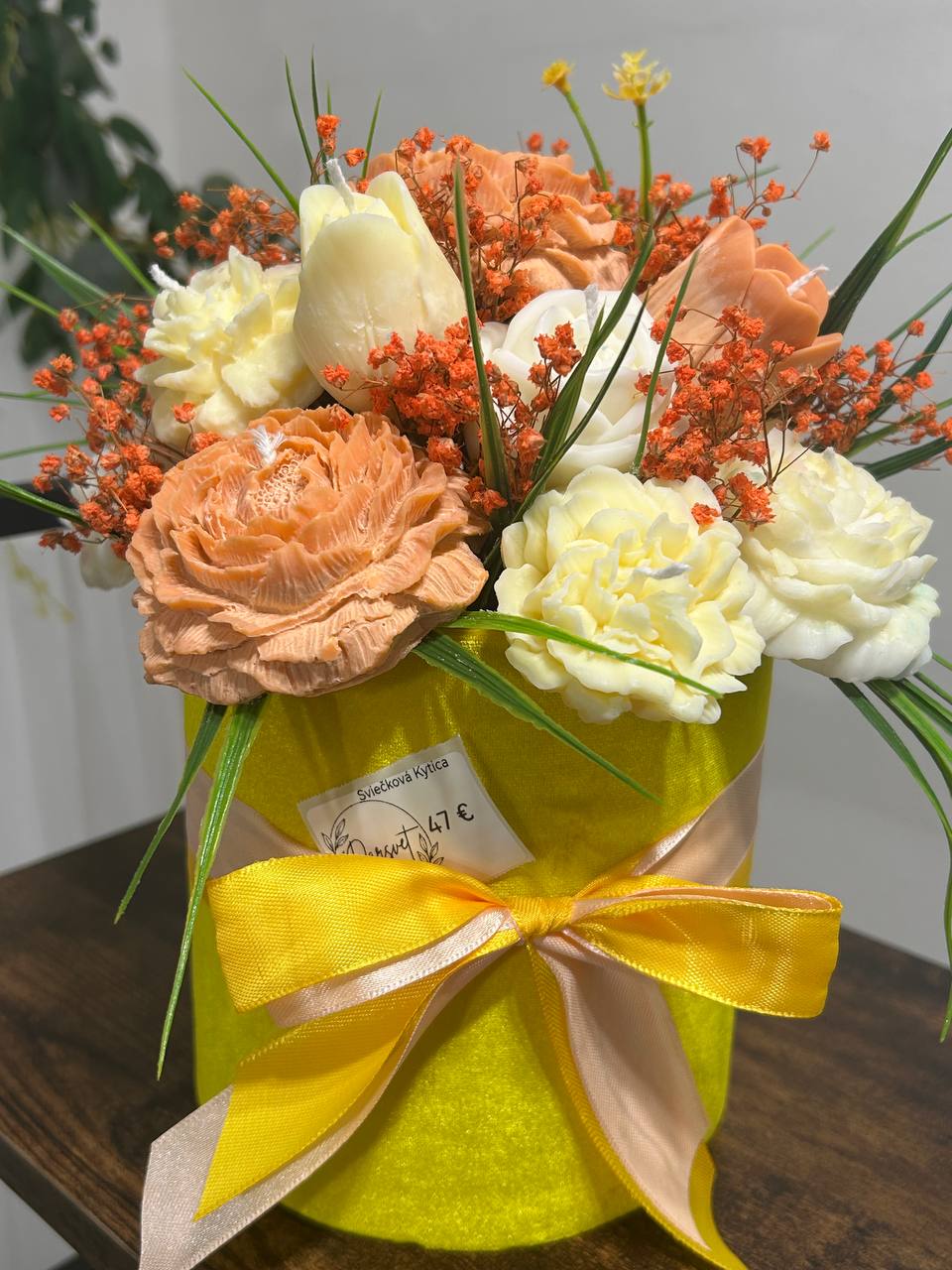 Sviečková kytica „Oranžovo-tyrkysový zážitok“